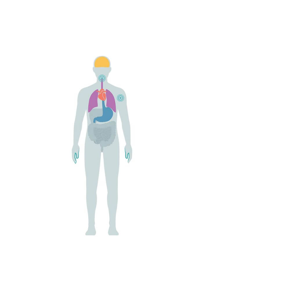 - durere în brațe, gât sau maxilar