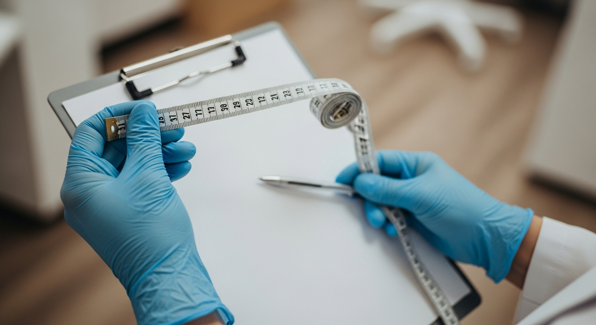 - • Obezitatea este diagnosticată printr-o combinație de IMC, măsurători precise ale grăsimii corporale (pliuri cutanate, raport talie-șold, imagistică) și analize de sânge pentru a identifica riscurile asociate. Măsurarea grăsimii din jurul taliei este un bun predictor al riscului de boli legate de obezitate.